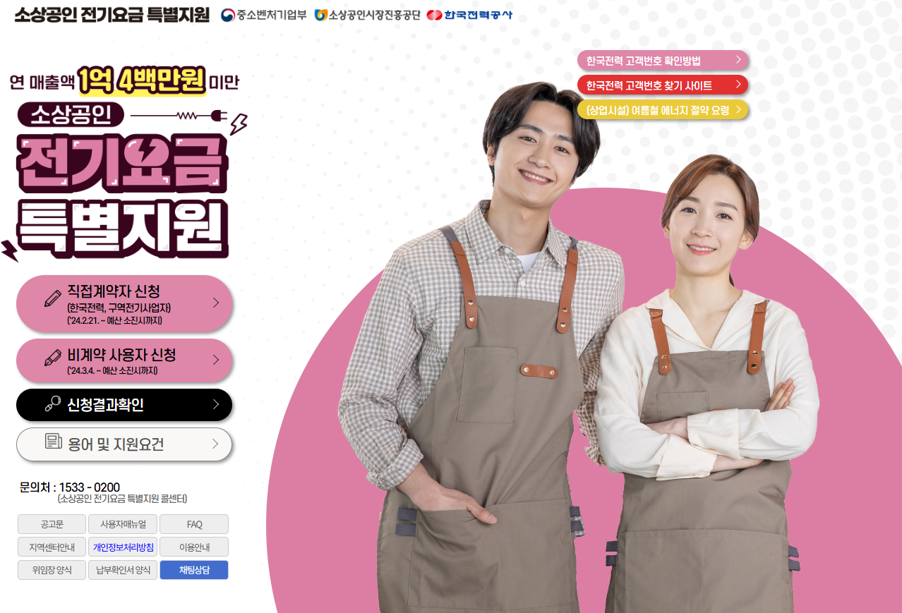- 소상공인 전기요금 특별지원 콜센터: ☎1533-0200
