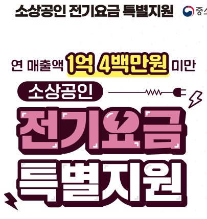 - 신청 방법 : 소상공인 전기요금 특별지원 공식 홈페이지를 통해 온라인 신청.